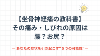 【下半身の不調】専門フロア 【坐骨神経痛の教科書】その痛み・しびれ、原因は“腰”?“お尻”?|専門家が見分け方を徹底解説 その坐骨神経痛、本当にヘルニアが原因?実は、お尻の筋肉「梨状筋」が原因かもしれません。病院の診断で改善しない方へ。専門家が、腰由来かお尻由来かを鑑別し、あなたの“本当の原因”を見つけ出すための科学的な見分け方を解説します。 2025.10.15 2025.10.18 【下半身の不調】専門フロア