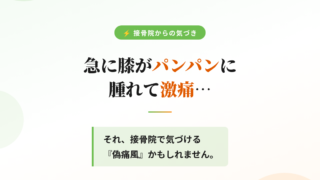 【下半身の不調】専門フロア 急な膝の激痛と腫れ!それ「偽痛風」かも?|接骨院が「地域の窓口」であるべき理由 膝が急にパンパンに腫れて激痛が走る…。その症状、マッサージNGの「偽痛風(ぎつうふう)」かもしれません。19年の臨床経験を持つ長岡京市のなかの接骨院院長が、痛風との違いや、接骨院が「地域の窓口」としてどう患者様を守るべきかを徹底解説。痛みを我慢せず、まずはご相談ください。 2026.03.23 【下半身の不調】専門フロア